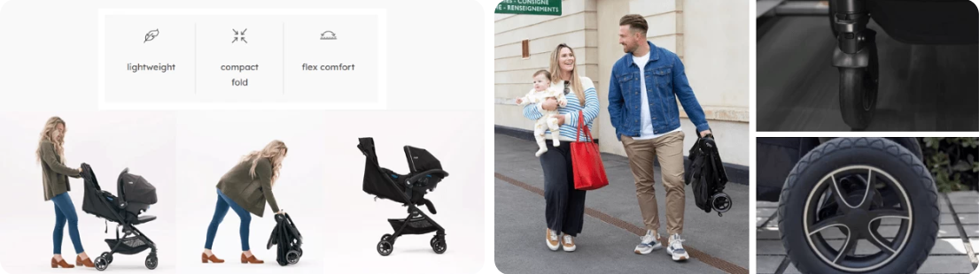 Ταξιδέψτε "ελαφρά": Τέλος στις δύσκολες μετακινήσεις – με μόλις 6 κιλά και ενσωματωμένο ιμάντα μεταφοράς το να το σηκώσετε και να το αποθηκεύσετε γίνεται παιχνίδι! Ελαφρύ αλλά όχι ασταθές – το συμπαγές αλλά στιβαρό πλαίσιο του είναι ελαφρύ, αλλά κάνει όλη τη βαριά δουλειά για εσάς, μεταφέροντας το μωρό και όλα τα απαραίτητα.