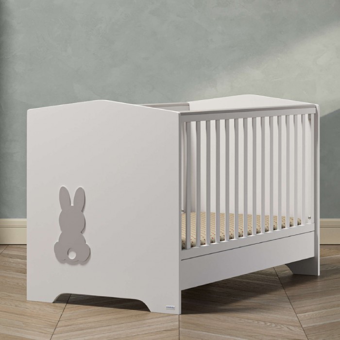 Βρεφικό κρεβάτι Rabbit που μετατρέπεται εύκολα σε προεφηβικό, με στιβαρή κατασκευή mdf & ξύλο οξιάς και ρυθμιζόμενο ύψος στρώματος.