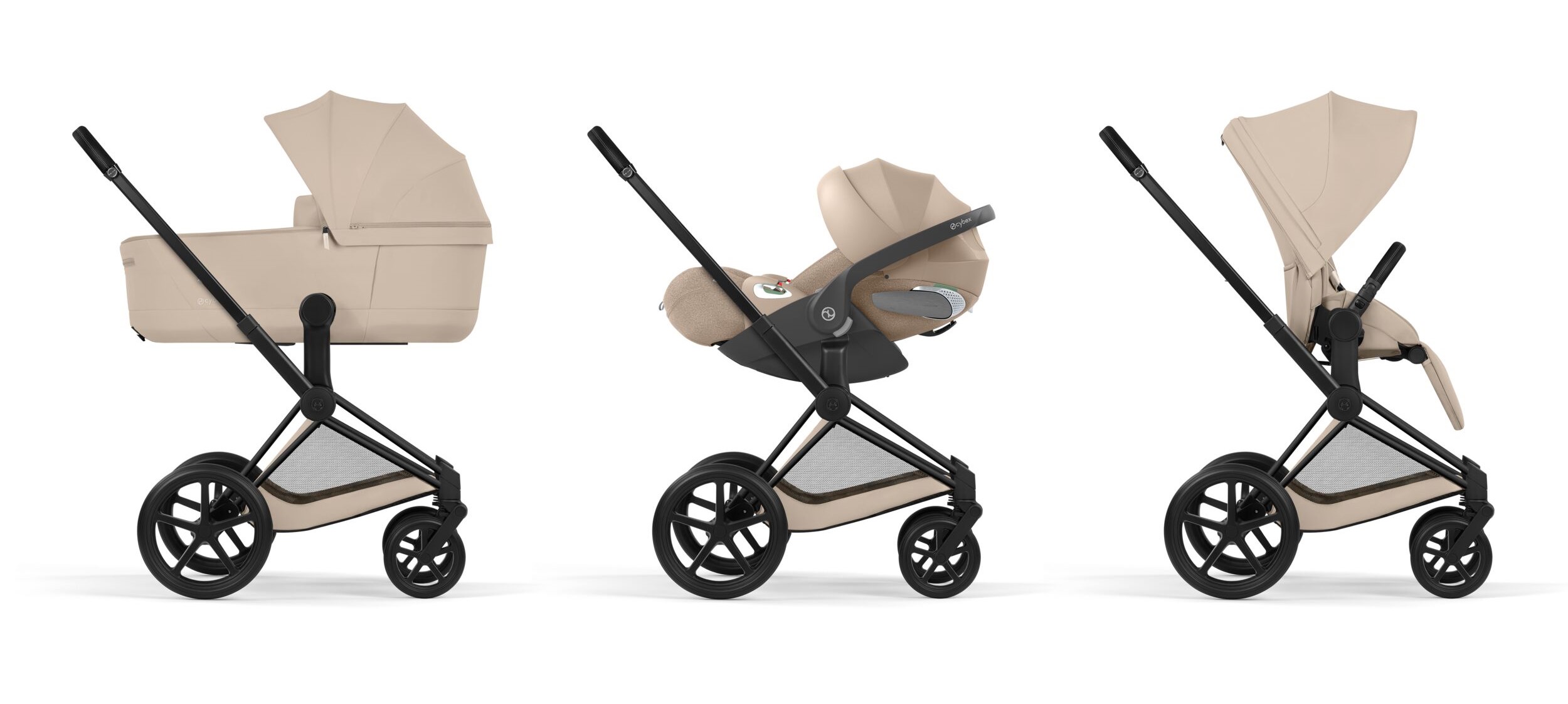 CYBEX Πολυκαρότσι 2in1 Priam Comfort Πτυσσόμενο Πορτ Μπεμπέ Matt Black Cozy Beige