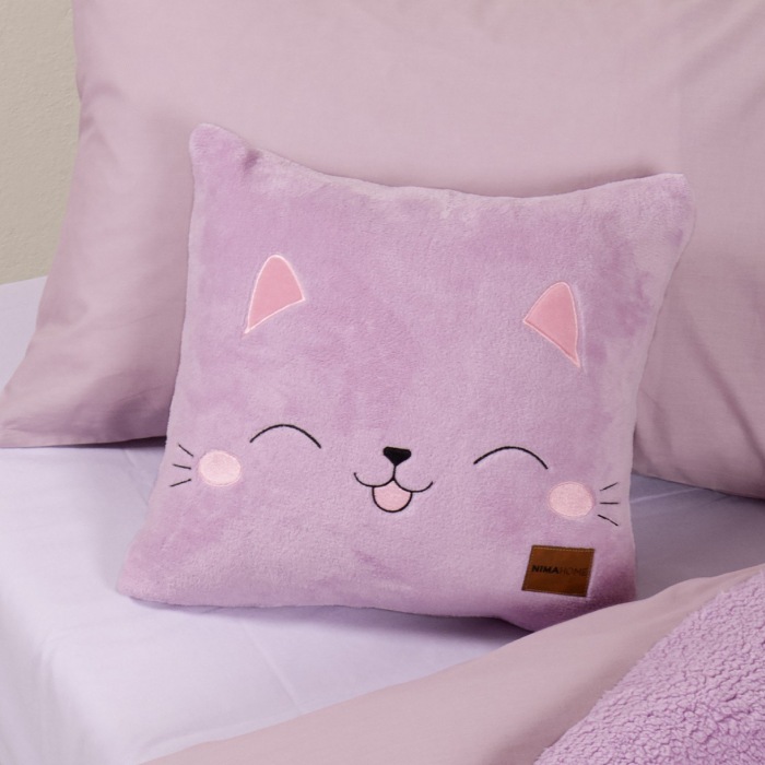 Η διακοσμητική μαξιλαροθήκη Lily της NIMA από απαλό Coral Fleece 100% polyester, προσφέρει ζεστασιά, άνεση και χαριτωμένο στιλ στο βρεφικό δωμάτιο, με κεντημένο μοτίβο χαριτωμένης γατούλας και απαλό ροζ χρώμα.