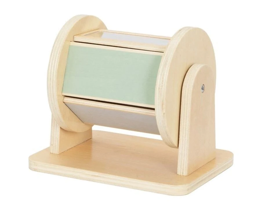Ένα τύμπανο σε βάση, σε όμορφα χρώματα ουράνιου τόξου, με καθρέφτη, σίγουρα αξίζει να το εξερευνήσετε. Τα μικρά παιδιά θα ήθελαν να παρακολουθούν τον εαυτό τους στους καθρέφτες και όταν ανακαλύψουν ότι το παιχνίδι αρχίζει να κάνει ήχους όταν γυρίζουν το τύμπανο, δεν θα το αφήσουν να φύγει.