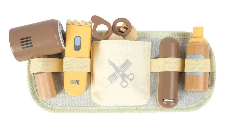 Ένα εκπαιδευτικό παιχνίδι σε μορφή ξύλινου σετ κομμωτηρίου με ζώνη θα επιτρέψει στα παιδιά να δοκιμάσουν το επάγγελμα του κουρέα ή του κομμωτή με έναν ασφαλή, παιδικό τρόπο. Ξύλινο πιστολάκι μαλλιών, ξυριστική μηχανή, σίδερο για μπούκλες, ψαλίδι και άλλα ξύλινα αξεσουάρ (αυτά είναι ξύλινα παιχνίδια, δεν κάνουν ήχους) θα μετατρέψουν κάθε παιδί σε έναν επαγγελματία κομμωτή που θα φροντίσει με ενθουσιασμό για το τέλειο χτένισμα για όλη την οικογένεια. Χάρη στην πρακτική ζώνη, o μικρός σας κομμωτής / κομμώτρια θα έχει πάντα ό,τι χρειάζεται στο χέρι ή μάλλον στη μέση του, έτοιμο για δράση. Η ζώνη διευκολύνει τον καθαρισμό και τη μεταφορά για τα παιδιά. Τα παιδιά μπορούν άνετα να πάνε το αγαπημένο τους σετ σε ένα φίλο, στη γιαγιά ή σε διακοπές. Μέσα από το παιχνίδι, το σετ κομμωτικής βελτιώνει τις δεξιότητες των παιδιών, τη χειρωνακτική επιδεξιότητα, αναπτύσσει τη φαντασία και τη δημιουργικότητα, τα παιδιά παίζουν ρόλους, περνούν περισσότερο χρόνο με τα αγαπημένα τους πρόσωπα.