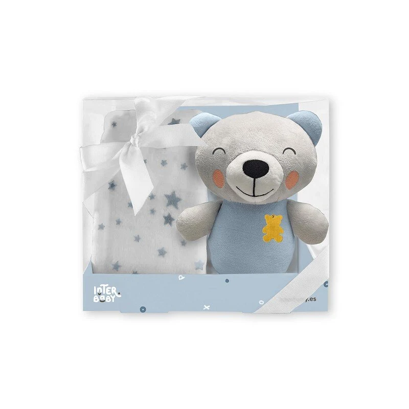 Interbaby Λούτρινο Αρκουδάκι & Κουβέρτα Αγκαλιάς 80X110 Blue