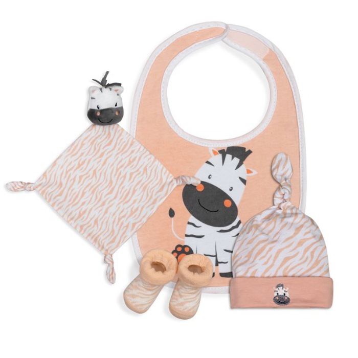 Όμορφο σετ δώρου για νεογέννητο που περιλαμβάνει σκουφάκι, σαλιάρα,νάνι και καλτσάκια. Από απαλά υλικά, σε χαρούμενο σχέδιο και κομψό κουτί δώρου ιδανικό για τα πρώτα του βήματα στη ζωή.