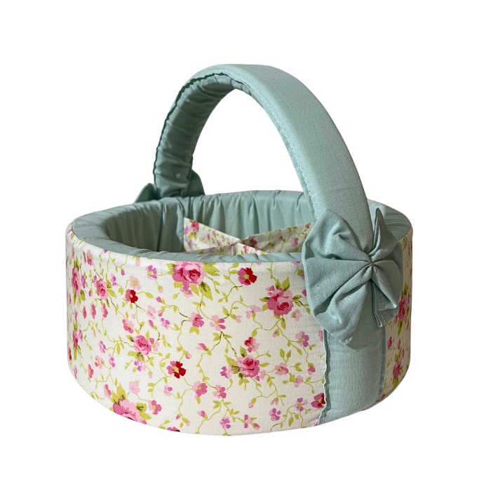 Υφασμάτινο στρογγυλό καλαθάκι για τα καλλυντικά, τις πάνες, τις κούκλες ή τα αξεσουάρ του μωρού.