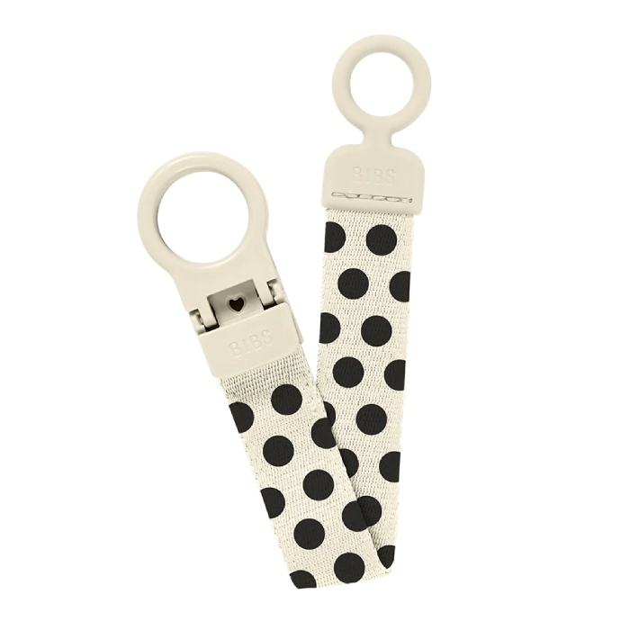 Κλιπ Πιπίλας Loop STUDIO Polka σε Ivory/Black με μηχανισμό ενός χεριού και εύκαμπτο δακτύλιο σιλικόνης για ασφαλή εφαρμογή σε όλες τις πιπίλες BIBS.