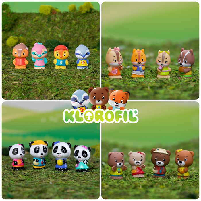 Οικογένεια 7 χαρακτήρων ιδανικό για όλα τα παιχνίδια της KLOROFIL όπως: μαγικό δέντρο, σχολείο, μανιτάρι και πολλά άλλα .