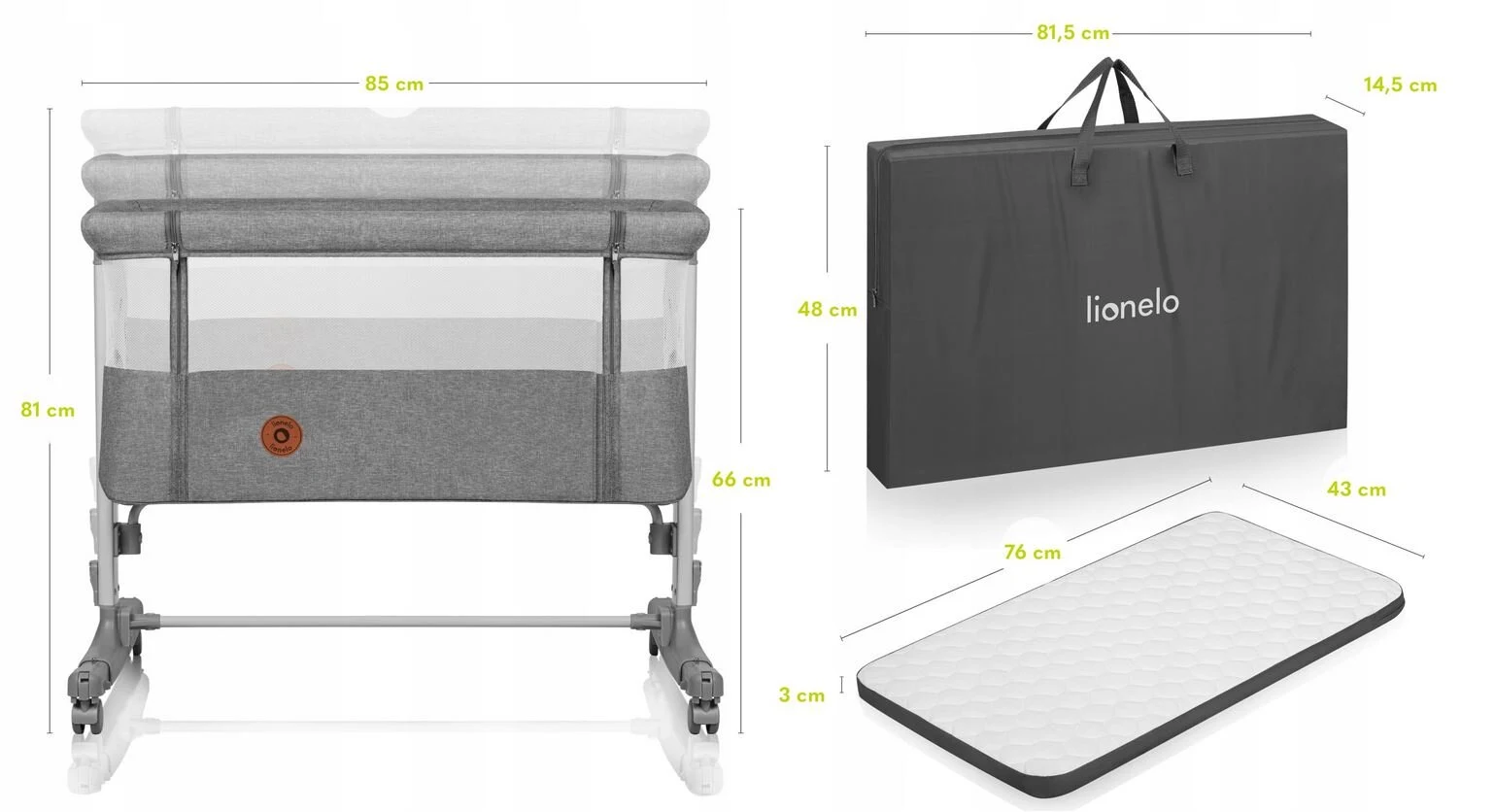 Ρυθμιζόμενο λίκνο Lionelo Aurora 3 σε 1, ιδανικό για συγκοίμηση.
