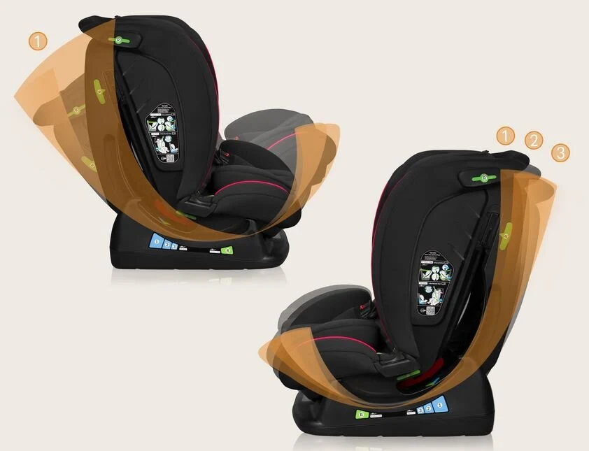 Το κάθισμα επιτρέπει έως και 3 μοίρες ρύθμισης της κλίσης της πλάτης του καθίσματος στη θέση FWF (με στραμμένο προς τα εμπρός) και μία ημι-ξαπλωμένη θέση όταν είναι εγκατεστημένη προς τα πίσω. Χάρη σε αυτό, το μωρό μπορεί να πάρει την πιο άνετη θέση, ελαχιστοποιώντας έτσι τον κίνδυνο πτώσης του κεφαλιού κατά τη διάρκεια ενός υπνάκου.