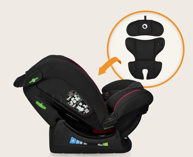 Η πρόσθετη πλευρική προστασία ενισχυμένη στα πλάγια απορροφά τη δύναμη της κρούσης. Το μαξιλάρι στο προσκέφαλο στηρίζει το λαιμό και προστατεύει το κεφάλι του παιδιού.