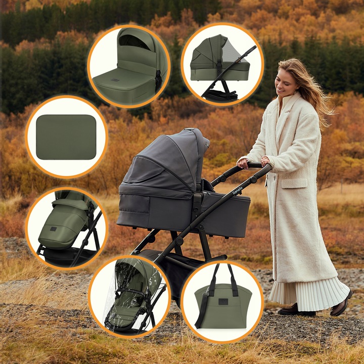 Lionelo Amber Plus Καρότσι Βρεφικό έως 22kg 3 σε 1 Green Forest