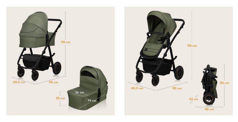 - Διαστάσεις πλαισίου + πορτ-μπεμπέ: 90*60,5*118 εκ.