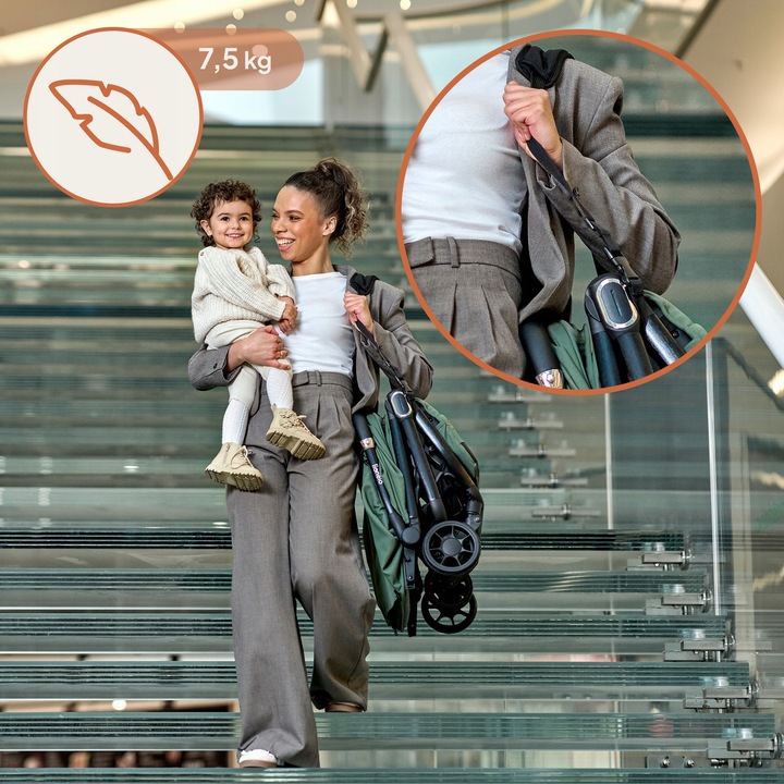 Επιπλέον, ο πρόσθετος ιμάντας ώμου επιτρέπει την άνετη μεταφορά του καροτσιού.