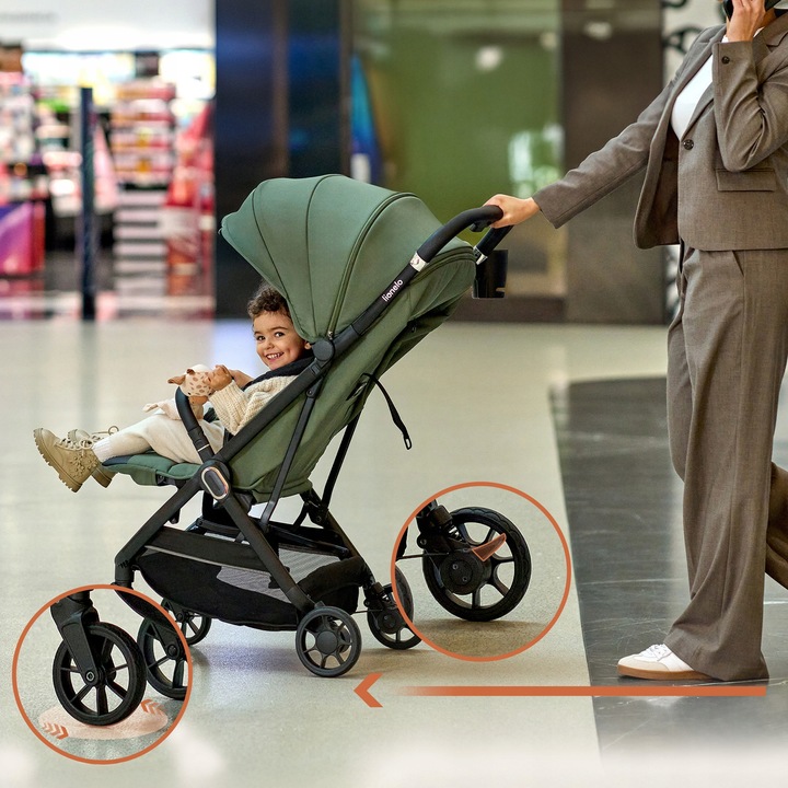 Οι περιστρεφόμενες ρόδες 360° από αφρό EVA προσφέρουν απόλυτο έλεγχο και ομαλή κύλιση. Δεν φθείρονται και δεν χρειάζονται φούσκωμα. Χάρη στην πλήρη ανάρτηση, το καρότσι περνά ομαλά πάνω από ανωμαλίες, εξασφαλίζοντας στο παιδί μια ήρεμη και άνετη βόλτα.