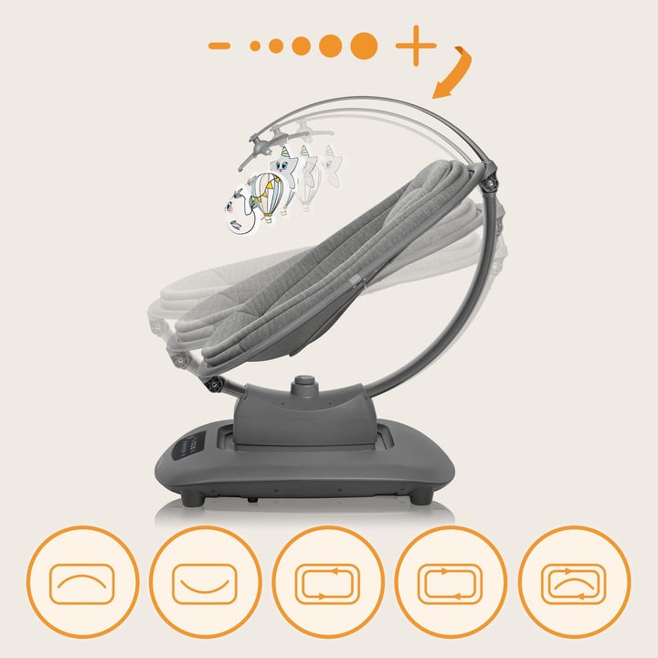 Έως 5 διαφορετικούς τρόπους κίνησης σε 5 διαφορετικές ταχύτητες! Αυτό περιλαμβάνει την πιο σημαντική κίνηση πάνω-κάτω, η οποία κάνει το μωρό σας να νιώθει ότι είναι στην αγκαλιά σας όλη την ώρα.