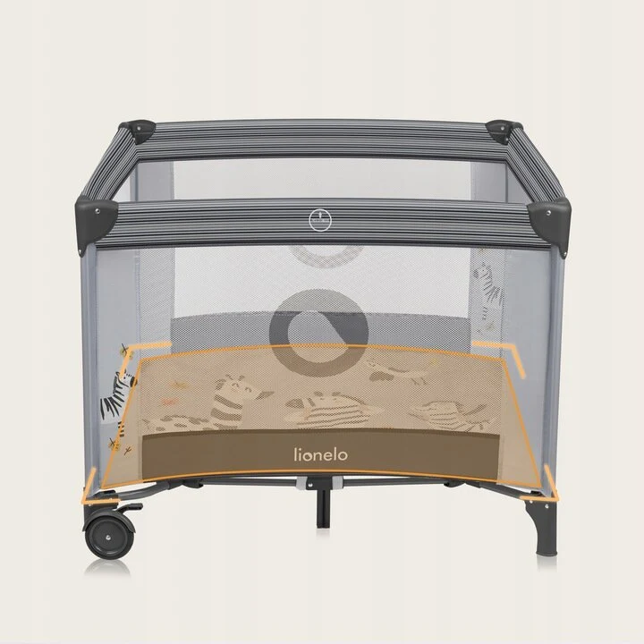Το lionelo Bonnie είναι ένα λειτουργικό παρκοκρέβατο για παιδιά που εγγυάται έναν ασφαλή και υγιεινό χώρο για παιχνίδι, παρέχοντας στους γονείς μια στιγμή ανάπαυσης. Οι ειδικές πλευρές πλέγματος επιτρέπουν την ελεύθερη κυκλοφορία του αέρα και τη διατήρηση της οπτικής επαφής με το παιδί. Η πλαϊνή είσοδος με φερμουάρ επιτρέπει στα μεγαλύτερα παιδιά να μπαίνουν και να βγαίνουν μόνα τους στο παρκοκρέβατο, ανακουφίζοντας έτσι την πλάτη του γονιού που δεν χρειάζεται να σηκώνει το μωρό κάθε φορά. Το φερμουάρ βρίσκεται στο εξωτερικό, οπότε ο φροντιστής έχει τον πλήρη έλεγχο του ανοίγματος του παρκοκρέβατου. Ένα αφρώδες στρώμα κατάλληλης σκληρότητας παρέχει άνετες συνθήκες για ξεκούραση. Είναι σημαντικό ότι το παρκοκρέβατο μπορεί εύκολα και γρήγορα να διπλωθεί σε μικρό μέγεθος και να μεταφερθεί χρησιμοποιώντας την τσάντα που περιλαμβάνεται στο σετ. Η σταθερή δομή από χάλυβα εξασφαλίζει μέγιστη ασφάλεια – όλα τα σκληρά στοιχεία βρίσκονται στο εξωτερικό.