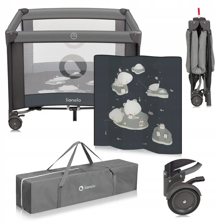 Το lionelo Bonnie είναι ένα λειτουργικό παρκοκρέβατο για παιδιά που εγγυάται έναν ασφαλή και υγιεινό χώρο για παιχνίδι, παρέχοντας στους γονείς μια στιγμή ανάπαυσης. Οι ειδικές πλευρές πλέγματος επιτρέπουν την ελεύθερη κυκλοφορία του αέρα και τη διατήρηση της οπτικής επαφής με το παιδί. Η πλαϊνή είσοδος με φερμουάρ επιτρέπει στα μεγαλύτερα παιδιά να μπαίνουν και να βγαίνουν μόνα τους στο παρκοκρέβατο, ανακουφίζοντας έτσι την πλάτη του γονιού που δεν χρειάζεται να σηκώνει το μωρό κάθε φορά. Το φερμουάρ βρίσκεται στο εξωτερικό, οπότε ο φροντιστής έχει τον πλήρη έλεγχο του ανοίγματος του παρκοκρέβατου. Ένα αφρώδες στρώμα κατάλληλης σκληρότητας παρέχει άνετες συνθήκες για ξεκούραση. Είναι σημαντικό ότι το παρκοκρέβατο μπορεί εύκολα και γρήγορα να διπλωθεί σε μικρό μέγεθος και να μεταφερθεί χρησιμοποιώντας την τσάντα που περιλαμβάνεται στο σετ. Η σταθερή δομή από χάλυβα εξασφαλίζει μέγιστη ασφάλεια – όλα τα σκληρά στοιχεία βρίσκονται στο εξωτερικό.