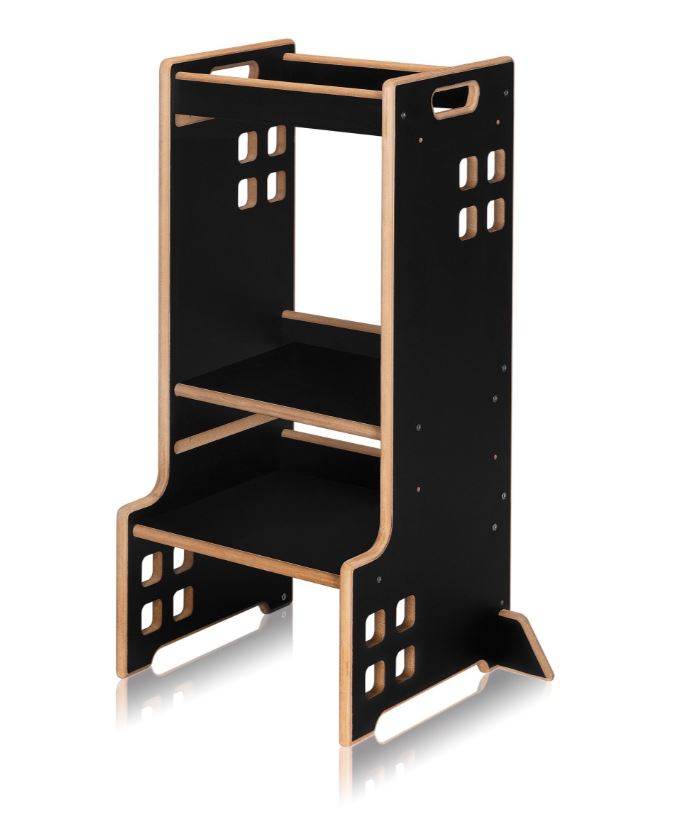 Lionelo Cass Montessori Ξύλινος Πύργος Εκμάθησης & Βιβλιοθήκη 2 σε 1 – 88cm Black Onyx