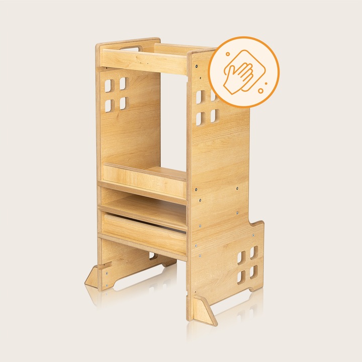 Προσαρμόζεται στο τρέχον ύψος του παιδιού. Καθώς το μικρό σας μεγαλώνει, το ύψος του υποπόδιου μειώνεται (3 επίπεδα ύψους πλατφόρμας: 22 cm, 33 cm και 40 cm). Μόλις ξεπεράσει τελείως, τα έπιπλα αλλάζουν σκοπό.