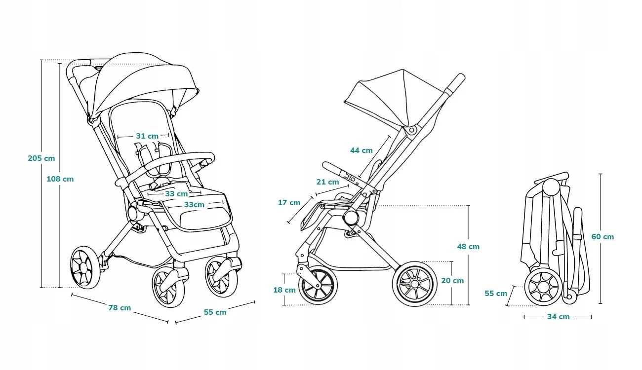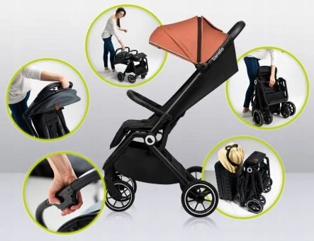 Εξαιρετικά μικρό μέγεθος μετά την αναδίπλωση – συμπαγές μέγεθος συν η τσάντα ταξιδιού που είναι προσαρτημένη στο καρότσι θα είναι ιδανική για ταξίδια με αυτοκίνητο, τρένο ή αεροπλάνο