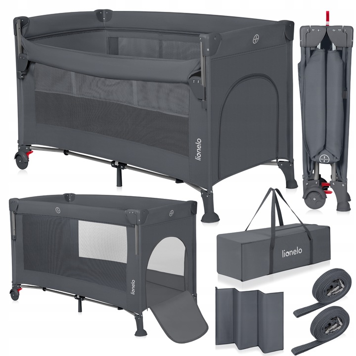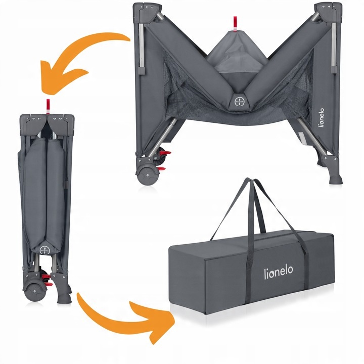 Lionelo Ellen παρκοκρέβατο 2 επιπέδων με κλείδωμα ασφαλείας κατά της τυχαίας αναδίπλωσης, ρόδες για εύκολη μεταφορά και τσάντα για να το παίρνετε παντού!