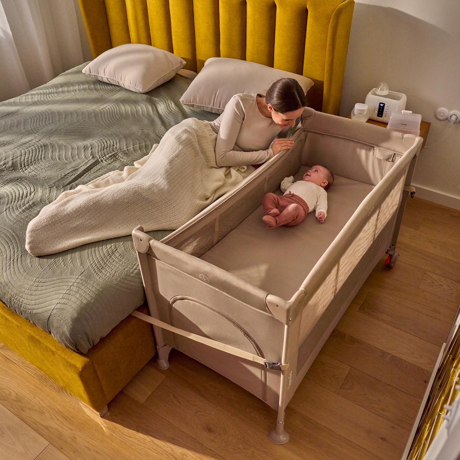 Αρκεί να χαμηλώσεις το πλαϊνό, και η κούνια μετατρέπεται σε πρακτικό λίκνο συγκοίμησης. Έτσι, μπορείς να βρίσκεσαι κοντά στο μωρό σου οποιαδήποτε στιγμή της ημέρας ή της νύχτας.