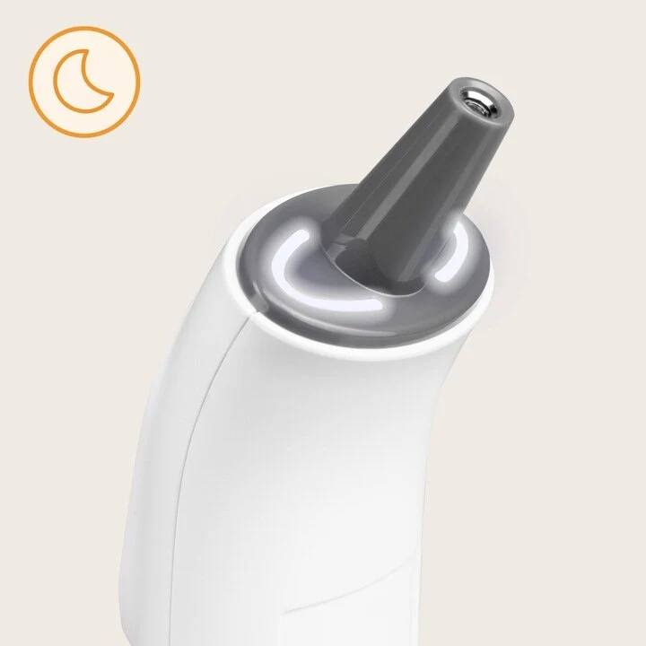 Οι μετρήσεις τη νύχτα δεν ενέχουν τον κίνδυνο να ξυπνήσουν το παιδί. Ένα λεπτό φως ενσωματωμένο στο θερμόμετρο φωτίζει ένα μέρος της περιοχής του αυτιού του μωρού, έτσι ώστε να μην χρειάζεται να ανάβετε το φως όταν κάνετε μια μέτρηση.