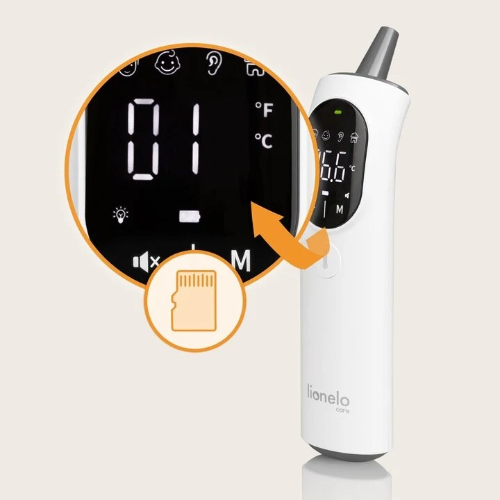 Επιτρέπει νυχτερινές μετρήσεις χωρίς τον κίνδυνο να ξυπνήσει ένα παιδί που κοιμάται – μια ενσωματωμένη λεπτή λάμπα φωτίζει την περιοχή γύρω από το αυτί του παιδιού έτσι ώστε να μην χρειάζεται να ανάψετε το φως και η αθόρυβη λειτουργία απενεργοποιεί όλους τους ήχους. Η ανάγνωση του αποτελέσματος είναι πολύ εύκολη – εάν η θερμοκρασία είναι λανθασμένη, υποδεικνύεται από έναν ήχο συναγερμού και ένα LED 3 χρωμάτων. Το θερμόμετρο θυμάται έως και 40 πρόσφατα αποτελέσματα, καθιστώντας εύκολη την παρακολούθηση του ιστορικού των μετρήσεων. Είναι πολύ εύκολο στη χρήση, δεν χρειάζεται καν να θυμάστε να το απενεργοποιήσετε – μετά από 30 δευτερόλεπτα. θα απενεργοποιηθεί για εξοικονόμηση ενέργειας. Το σετ περιλαμβάνει μια κομψή τσάντα αποθήκευσης.