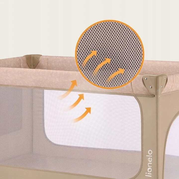 Οι διχτυωτές πλευρές εξασφαλίζουν εξαιρετική κυκλοφορία του αέρα, εμποδίζοντας το μωρό σας να ιδρώσει τις ζεστές μέρες. Επιπλέον, επιτρέπουν στο παιδί και τον γονέα να διατηρούν συνεχή οπτική επαφή – ο γονέας μπορεί να παρακολουθεί τι συμβαίνει στο μωρό και το παιδί είναι πιο ήρεμο όταν ο φροντιστής είναι στον ορίζοντα.