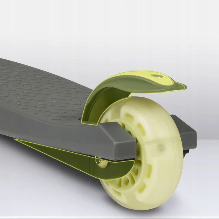 - Τρεις συμπαγείς τροχοί του σκούτερ εξασφαλίζουν σταθερότητα και ισορροπία κατά την οδήγηση. Αυτή είναι μια τέλεια λύση για αρχάριους χρήστες που μαθαίνουν πώς να ελέγχουν το όχημα.