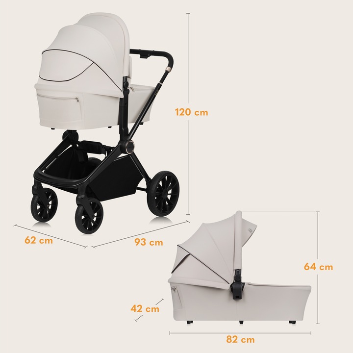 - Εσωτερικό: 30,5 x 74 x 20 εκ. σκελετός + πορτ-μπεμπέ: 62 x 93 x 120 εκ.
