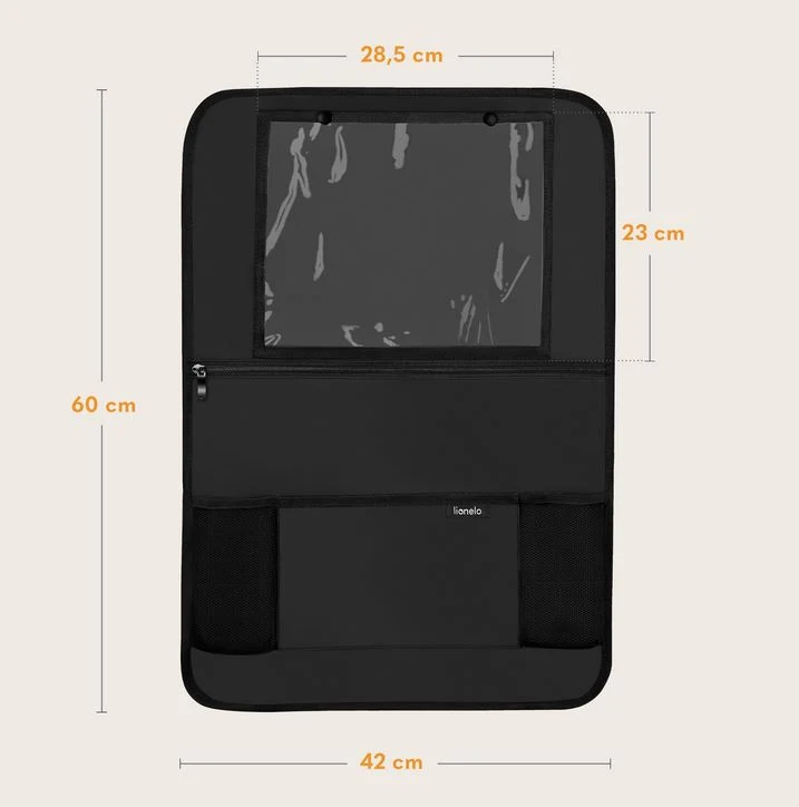 Μια λειτουργική διάταξη οργάνωσης αυτοκινήτου που μπορεί να στερεωθεί στην πλάτη του μπροστινού καθίσματος, ιδανική για ταξίδια Lionelo SeatOrganizer