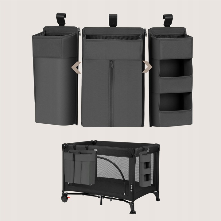 Lionelo Sidepocket Large Κρεμαστός Οργανωτής για κούνια/παρκοκρέβατο Gray