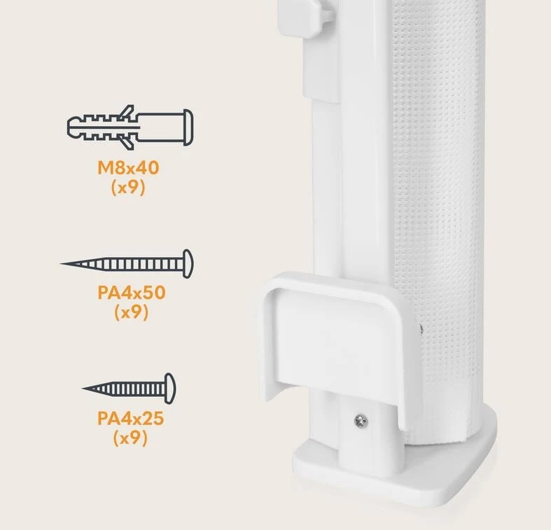 - Το σετ περιλαμβάνει: πύλη ασφαλείας, 3x κιτ τοποθέτησης με βίδες