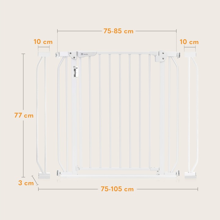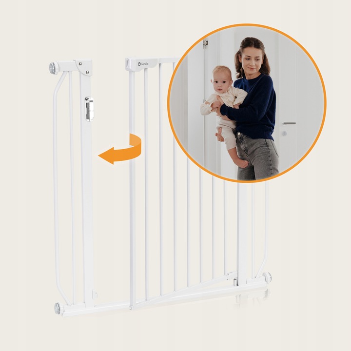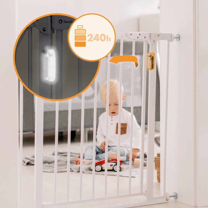 Η πόρτα ασφαλείας της Lionelo προσφέρει τη μέγιστη ασφάλεια, ασφαλίζοντας σκάλες, πόρτες ή περιορίζοντας το χώρο του μικρού εξερευνητή σε ασφαλές σημείο.