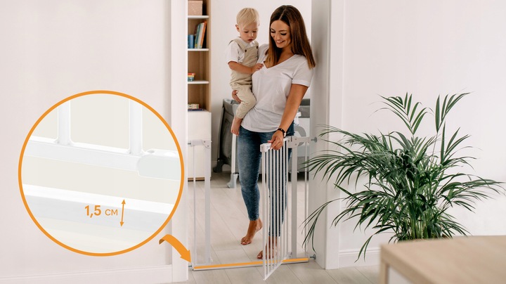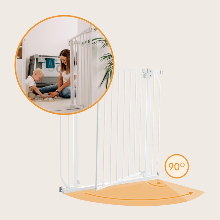 Λειτουργία αυτόματου κλεισίματος – μετά το άνοιγμα, η πόρτα του κάγκελου κλείνει αργά αυτόματα. Αυτό είναι ιδιαίτερα χρήσιμο, για παράδειγμα, όταν ο γονιός κρατάει το παιδί στην αγκαλιά. Μετά το χαρακτηριστικό «κλικ» πρέπει πάντα να βεβαιώνεστε ότι η πορτούλα έχει κλείσει σωστά.