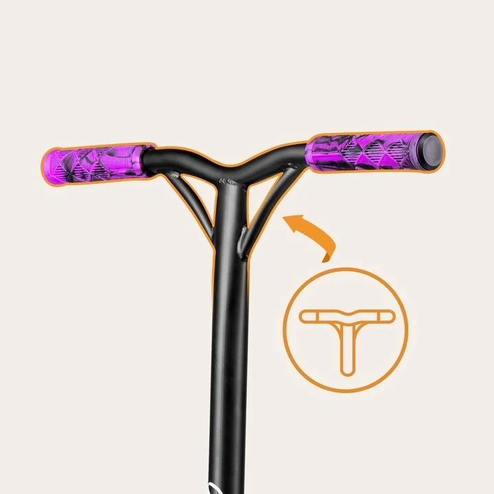 Το μεγάλο πλάτος και οι άνετες λαστιχένιες λαβές – πλάτους 57 cm κάνουν το σκούτερ τέλειο για διάφορα άλματα: bunny hop ή nollie.