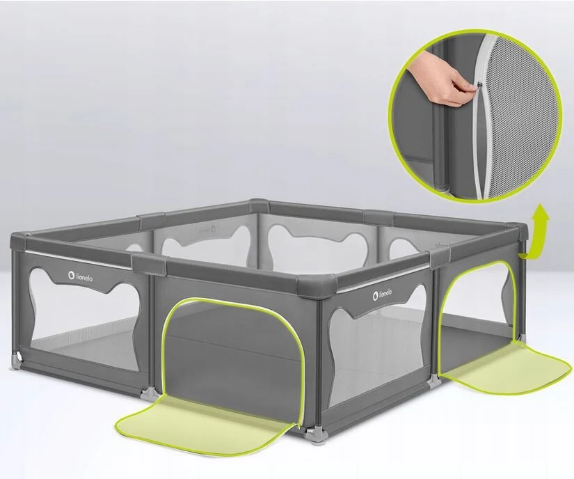 Δύο πλαϊνές είσοδοι με φερμουάρ επιτρέπουν τον πλήρη έλεγχο του χώρου – το φερμουάρ βρίσκεται στο εξωτερικό, οπότε μόνο ο γονέας μπορεί να αποφασίσει να ανοίξει τις εισόδους.