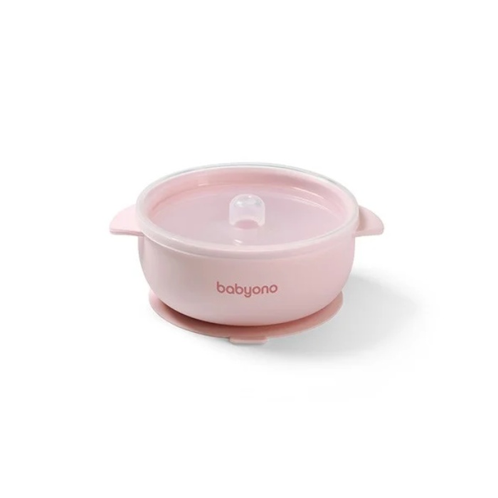 Μπολάκι σιλικόνης BABYONO με λαβές, καπάκι & βάση με βεντούζα - Ροζ BN1662/02