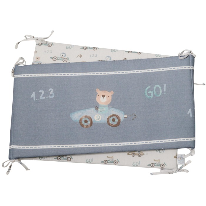Πάντα κούνιας διπλής όψης 34x210cm από 100% βαμβάκι Oeko-Tex, με σταθερή γέμιση για προστασία και άνεση στο βρεφικό κρεβατάκι.