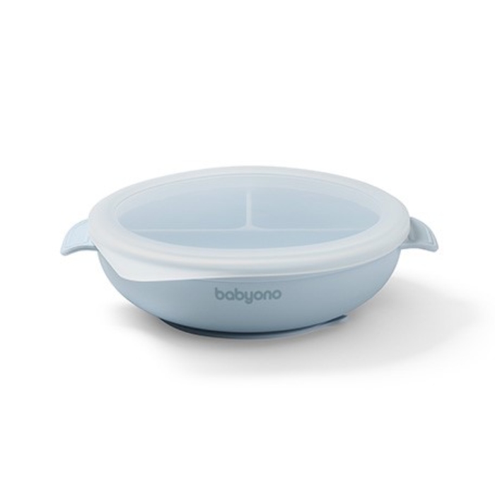 Πιάτο σιλικόνης BABYONO με 3 θέσεις, καπάκι & βάση με βεντούζα - Μπλε BN1661/01