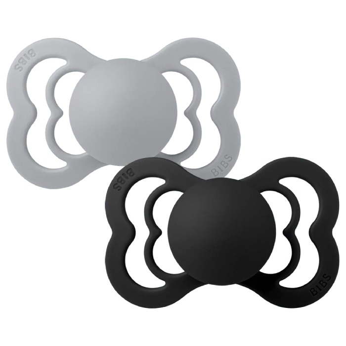 Supreme Πιπίλες (2 τεμ.) BIBS Silicone Cloud/Black με συμμετρική θηλή, μεγάλα ανοίγματα αερισμού και κομψό ματ φινίρισμα για μέγιστη άνεση.
