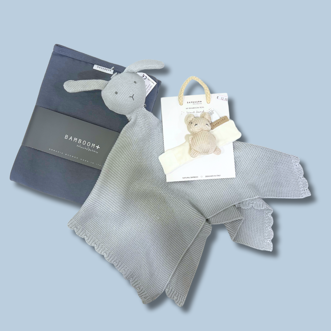 Ένα τρυφερό και προσεγμένο σετ δώρου για μωρό, ιδανικό για τις πρώτες αγκαλιές και τις πιο γλυκές στιγμές της βρεφικής ηλικίας.