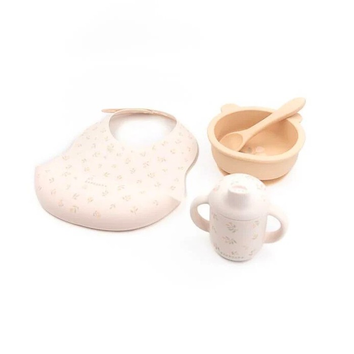 Το σετ περιλαμβάνει σαλιάρα σιλικόνης με τσεπάκι συλλογής τροφής, μπολ με βεντούζα και κουταλάκι, καθώς και ποτηράκι, προσφέροντας τον ιδανικό σύμμαχο στο ταξίδι της ανεξαρτησίας του μικρού σας στο τραπέζι.
