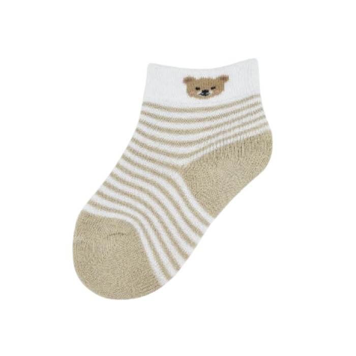 Ένα υπέροχο ζευγάρι ριγέ κάλτσες με σχέδιο αρκουδάκι σε μπεζ χρώμα από την εταιρεία NOVITI.