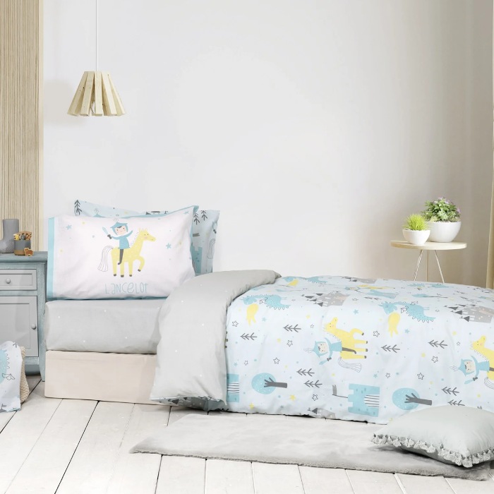 Τo βαμβακερό σετ σεντονιών Lancelot θα μεταμορφώσει το παιδικό δωμάτιο σε ένα μαγικό βασίλειο, γεμάτο με ιππότες, δράκους και κάστρα, όλα σχεδιασμένα με λιτές ανεπιτήδευτες γραμμές, σαν μια παιδική ζωγραφιά.