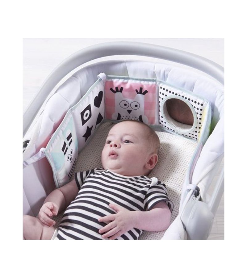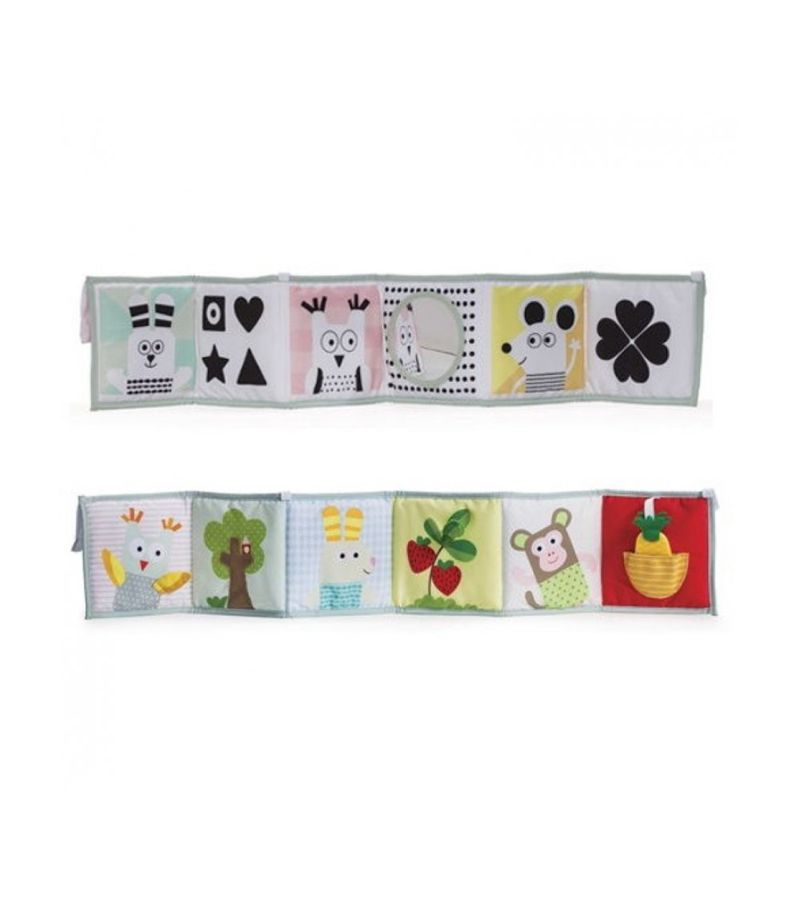 Διαθέτει διαφορετικές υφές, τρισδιάστατα σχέδια, συμπεριλαμβανομένου ενός μασητικoύ, θήκη για παιχνίδια και καθρέφτη ασφαλείας.