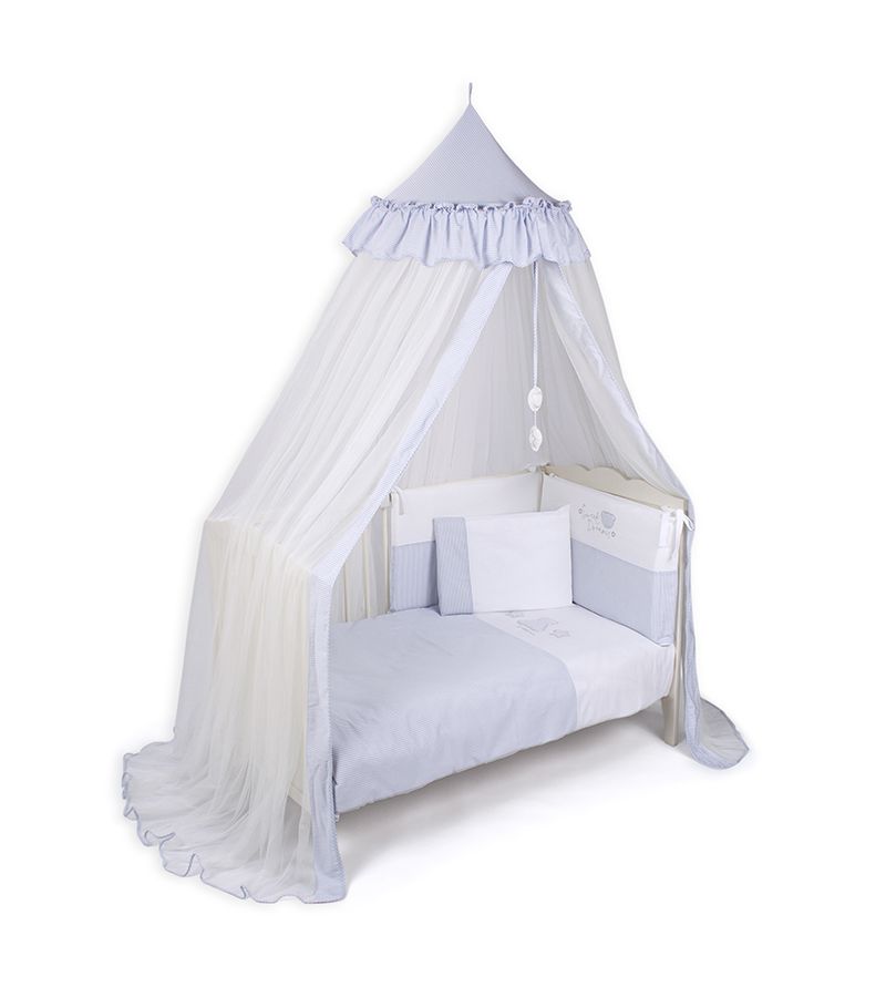 Τίποτα δεν είναι πιο κατάλληλο για ένα μικρό πρίγκιπα από μια τούλινη κουνουπιέρα με θόλο σε μπλε χρωματικούς τόνους.