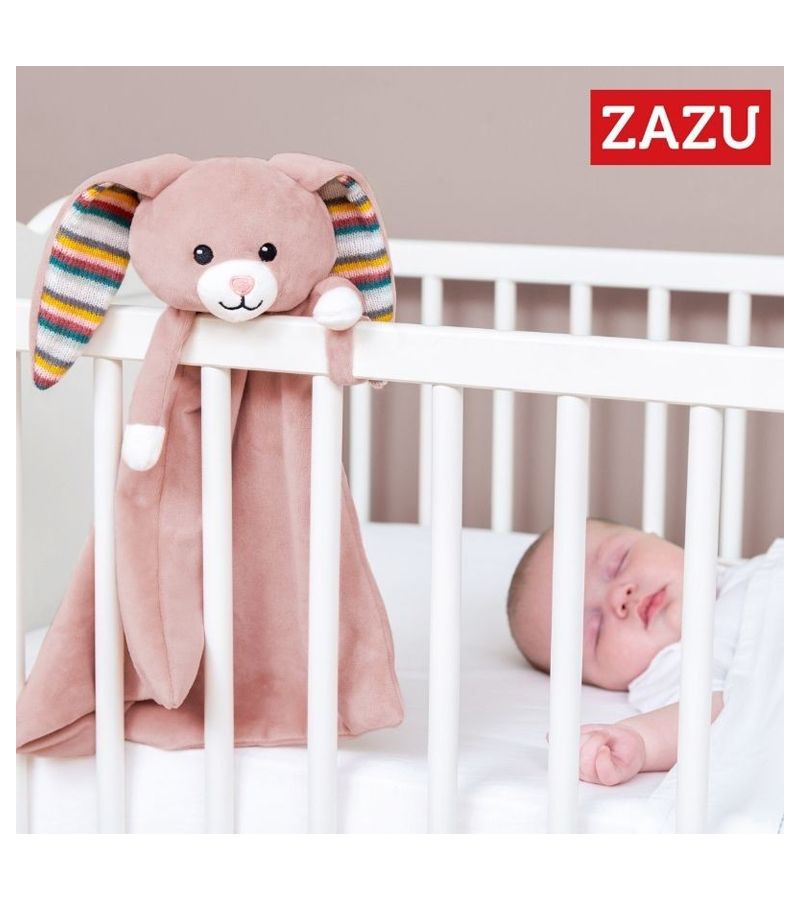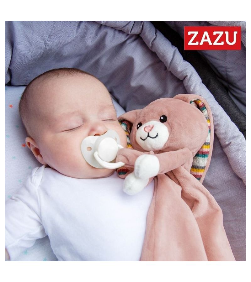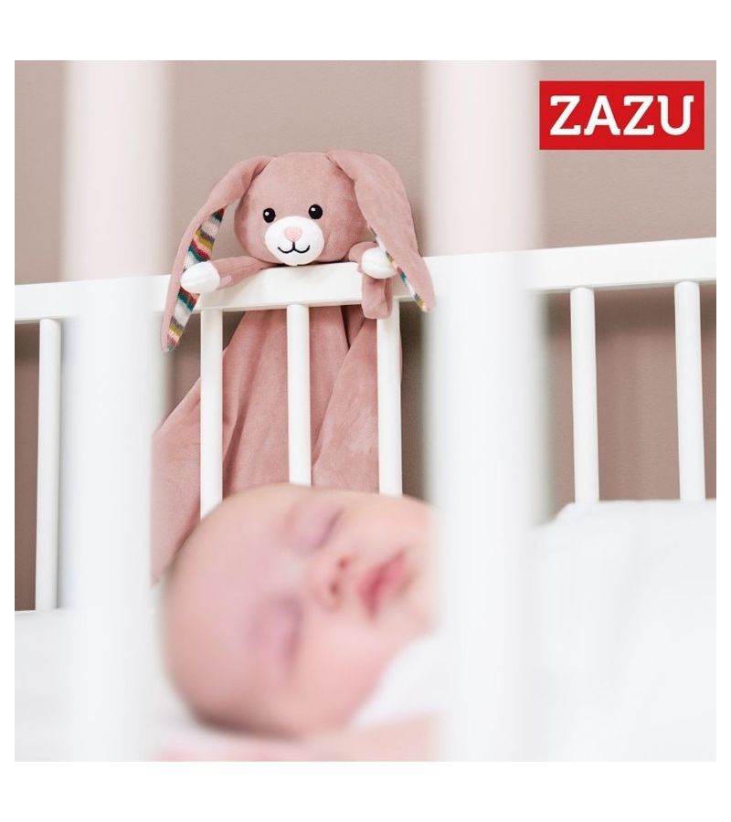 Πανάκι Αγκαλιάς με Συσκευή Λευκών ήχων & Μελωδίες από την εταιρεία ZAZU σε σχέδιο λαγού σε ροζ χρώμα.