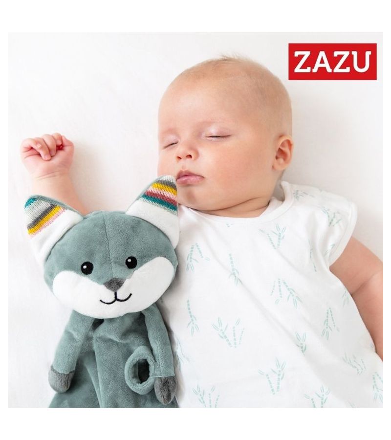 Πανάκι Αγκαλιάς με Συσκευή Λευκών ήχων & Μελωδίες από την εταιρεία ZAZU σε σχέδιο αλεπού σε γκρι χρώμα.